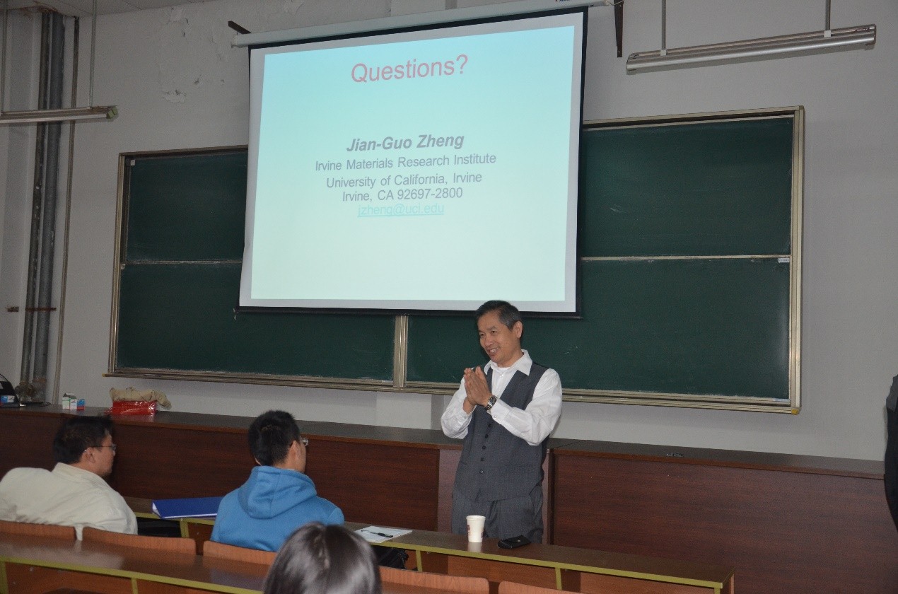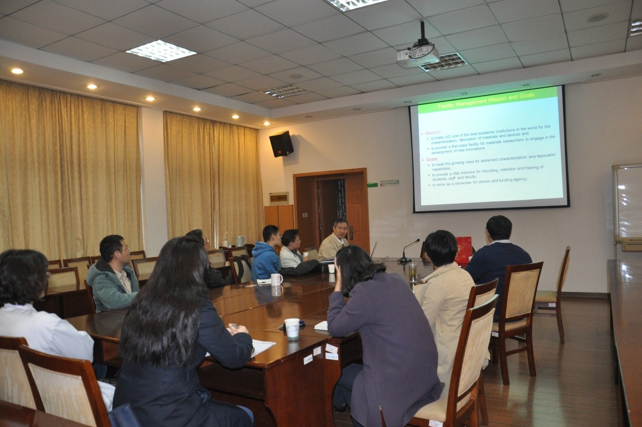 11月2日下午,我中心兼职教授加州大学尔湾分校材料研究所郑建国先生亲临我中心高分辨电镜室进行橡胶样品聚苯胺的表征指导,次日在教学楼W236就透射电镜制样方法进行了讲座指导,随后在测试中心会议室就其所在的研究所实验室管理、发展等方面的经验和做法进行了分享和答疑。