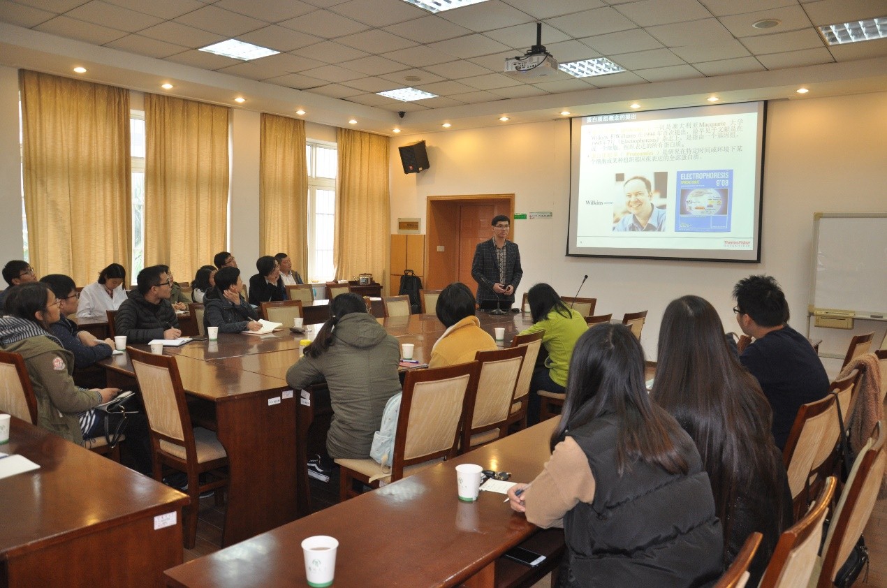 11月14日下午,赛默飞世尔科技公司高级应用工程师在中心会议室为来自多个学院的老师和研究生做了题为《Orbitrap在蛋白质组学中的应用:基础与前沿》的学术报告。主要介绍了QExactive高分辨质谱仪的相关原理和性能指标以及其在蛋白质组学领域的应用,如蛋白分子量测定、多肽序列分析、标记定量与非标记定量、翻译后修饰鉴定等,并就相关技术问题进行了分享和答疑。