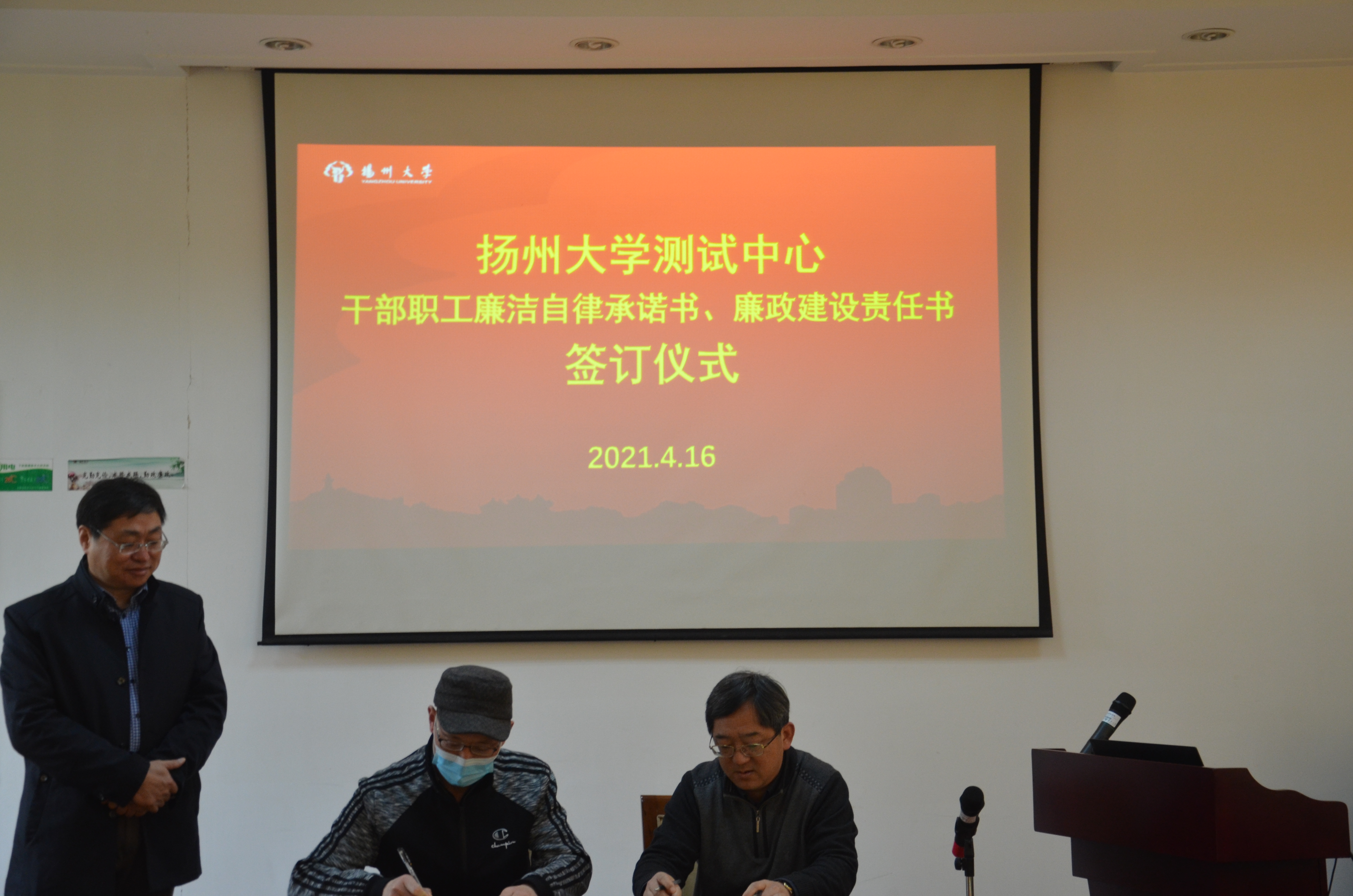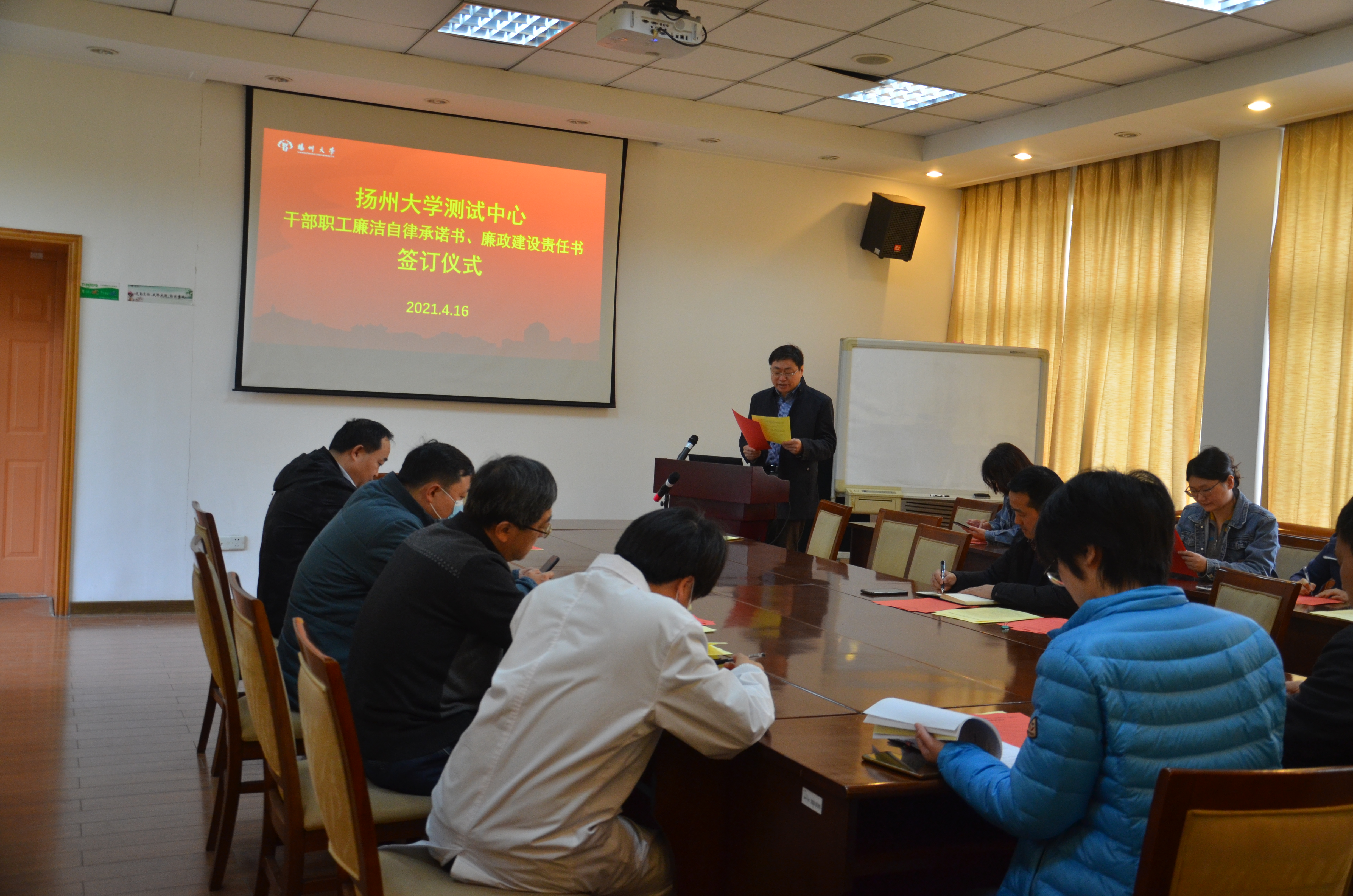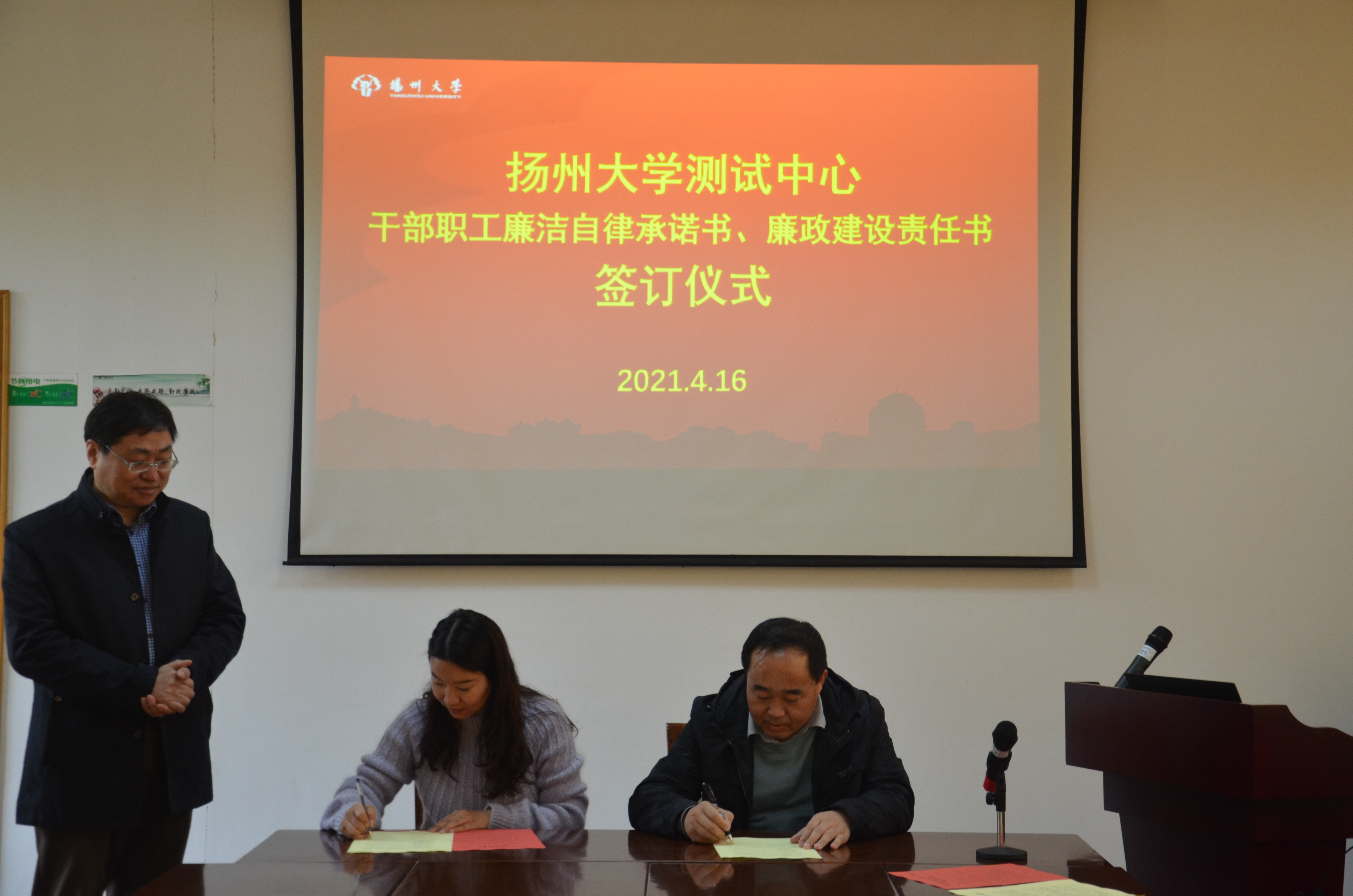 4月16日,中心举行2021年廉洁自律承诺书和廉政建设责任书签订仪式。签订仪式由中心主任王赪胤主持。王主任要求中心人员在平时工作生活中要加强廉政建设,信守廉政承诺,时刻绷紧廉政建设思想防线,做到警钟长鸣,以高效廉洁的形象完成全年工作任务。廉政建设责任人和责任对象分别签订了廉政建设责任书。
