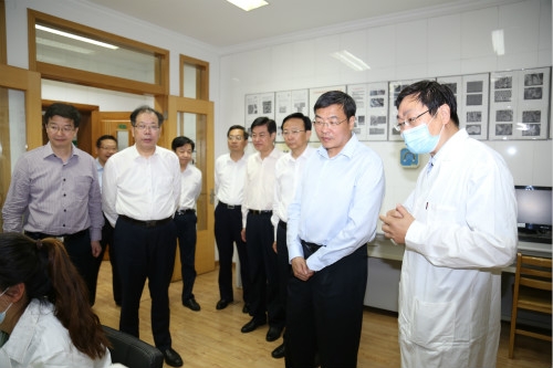 5月22日下午,马欣副省长来中心视察,调研中心疫情防控及复工复产工作。省政府副秘书长徐光辉,扬州市委书记夏心旻,省委教育工委副书记徐子敏,省文化和旅游厅副厅长、南京博物院院长龚良,扬州市委常委、市委秘书长韩骅,扬州市副市长余珽等随同视察。校党委书记姚冠新,党委副书记叶柏森陪同视察。