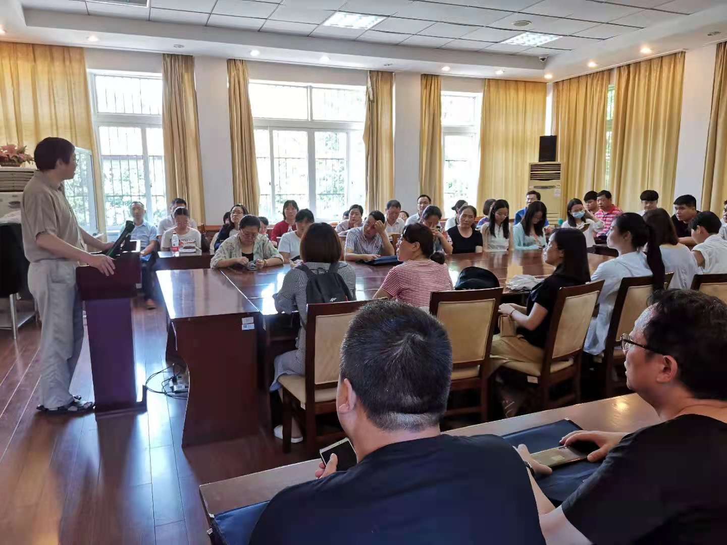 7月12日,由生物科学与技术学院主办的2021年江苏省高等职业院校教师“食品安全与传染病防控”培训班成员50多人来中心参观。