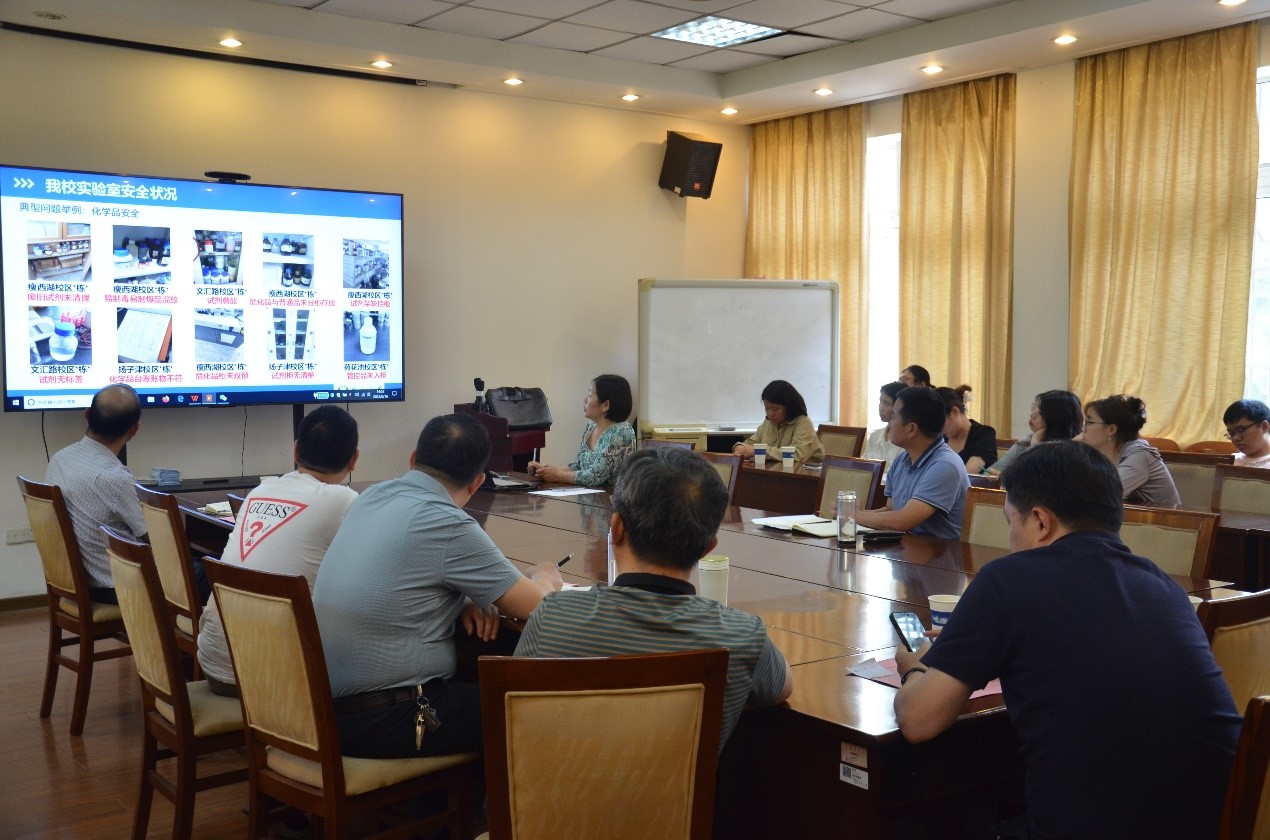 张惠芹从近年来发生的高校实验室安全案例引入,警示忽视实验室安全所带来的严重后果,提醒中心老师和学生始终绷紧实验室安全这根弦,绝不能有丝毫放松警惕;张惠芹从仪器设备安全操作、危化品的管理使用、废弃物的收集处置、安全督查平台的使用等方面给予详细指导,要求中心老师和学生严格遵照《高等学校实验室安全规范》及学校安全管理规定开展各项实验工作,排查各类安全隐患,谨防“黑天鹅”和“灰犀牛”事件的发生。