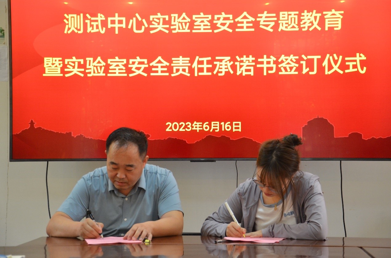 6月16日下午,测试中心在二楼会议室举办实验室安全专题教育活动,此次活动邀请了实验室与设备管理处副处长张惠芹作实验室安全专题报告,并举行了测试中心师生实验室安全责任承诺书签订仪式。实验室与设备管理处副处长、测试中心主任周俊主持活动。