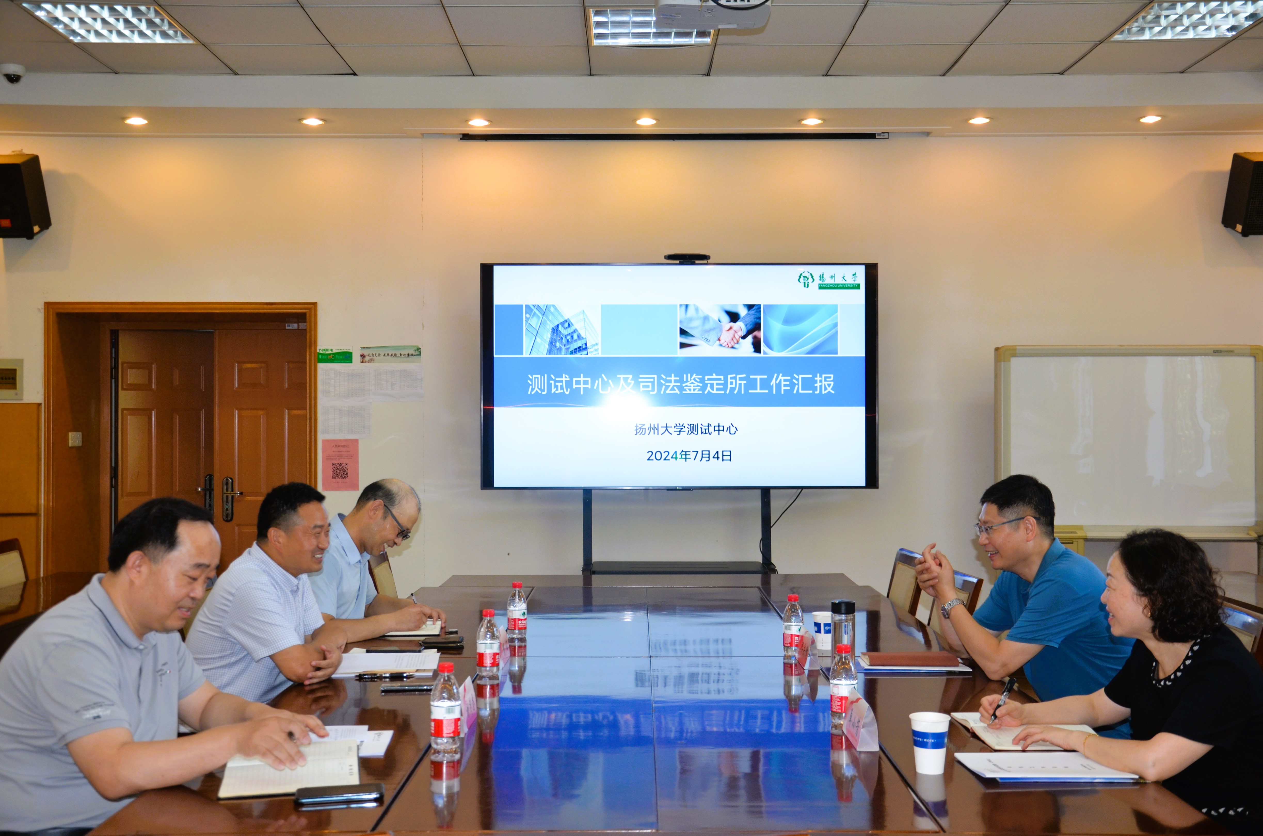 测试中心主任周俊从人才队伍建设、仪器设备现状、测试服务效益、技术培训、司法鉴定工作等方面汇报了中心的相关工作;邱庆峰充分肯定了测试中心工作,要求中心继续严把测试质量关、强化服务意识,增强责任意识、加强内部管理、保持廉洁自律,为学校教学科研以及地方社会经济发展作出更大贡献。