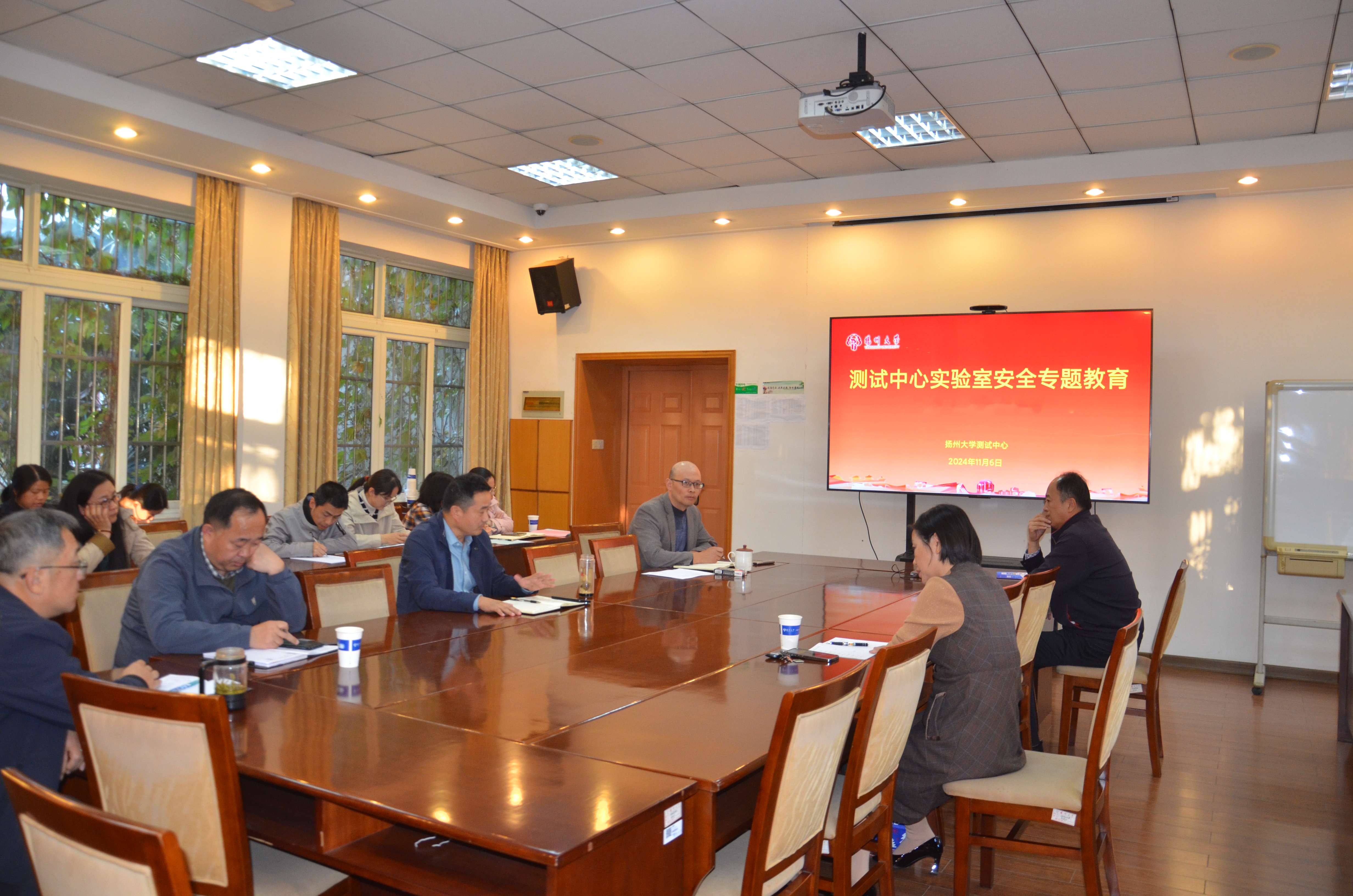 11月6日下午,测试中心举办实验室安全专题教育暨消防演练活动,此次活动邀请广陵消防救援大队大队长翟小鹏、实验室与设备管理处实验室安全与设备维修管理科科长李江分别作消防安全知识宣讲和实验室安全专题培训;中心举行了实验室安全工作目标管理责任书签订仪式。实验室与设备管理处副处长张惠芹出席教育活动并做总结讲话,实验室与设备管理处副处长、测试中心主任周俊主持活动。