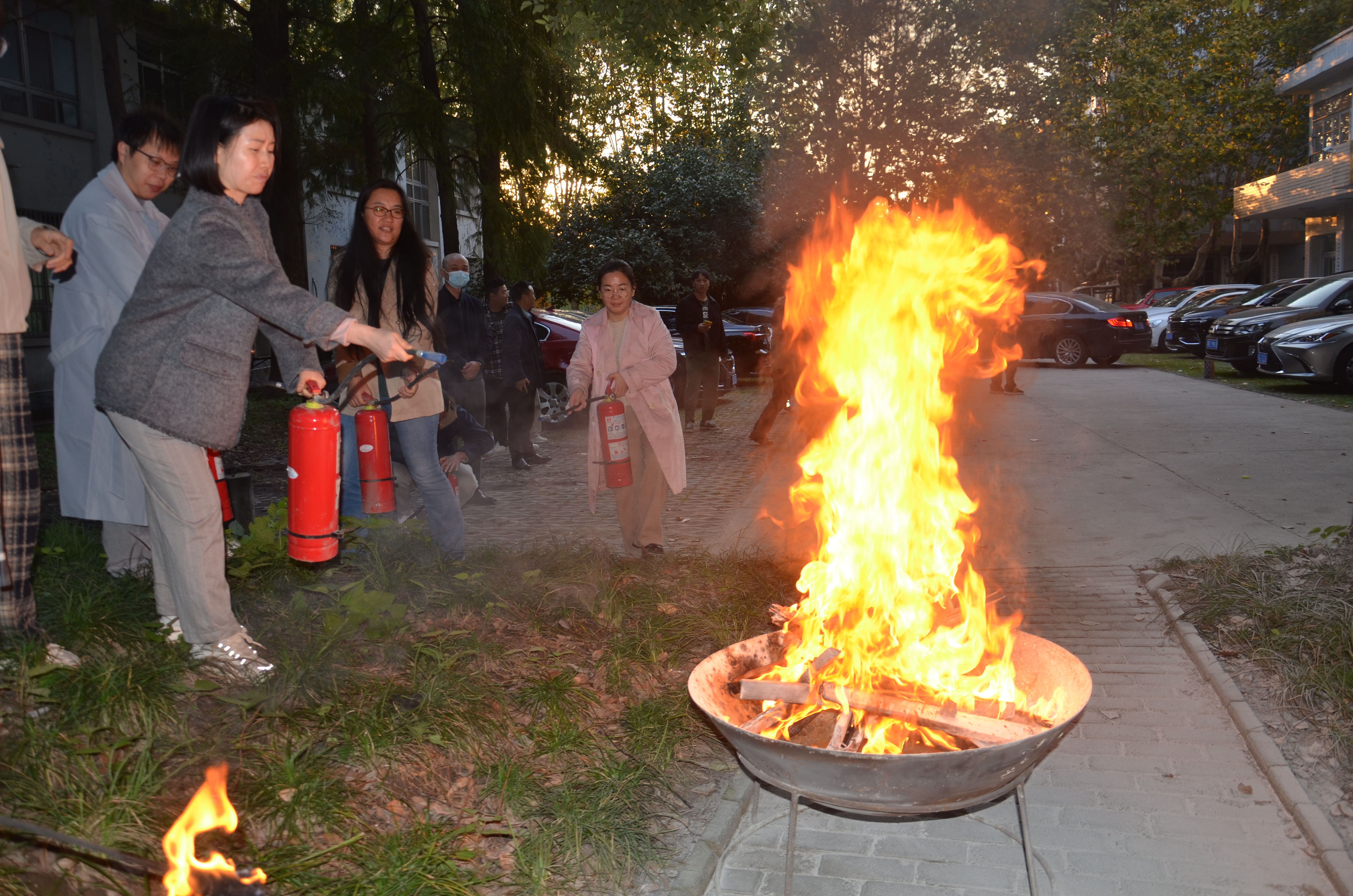 按照中心实验室安全工作责任网络,中心安全负责人、实验室负责人及在中心学生分别签订了相应的实验室安全工作目标管理责任书。最后,在保卫处工作人员的指导和协助下,全体师生学习了干粉灭火器的使用方法并实操演练灭火。