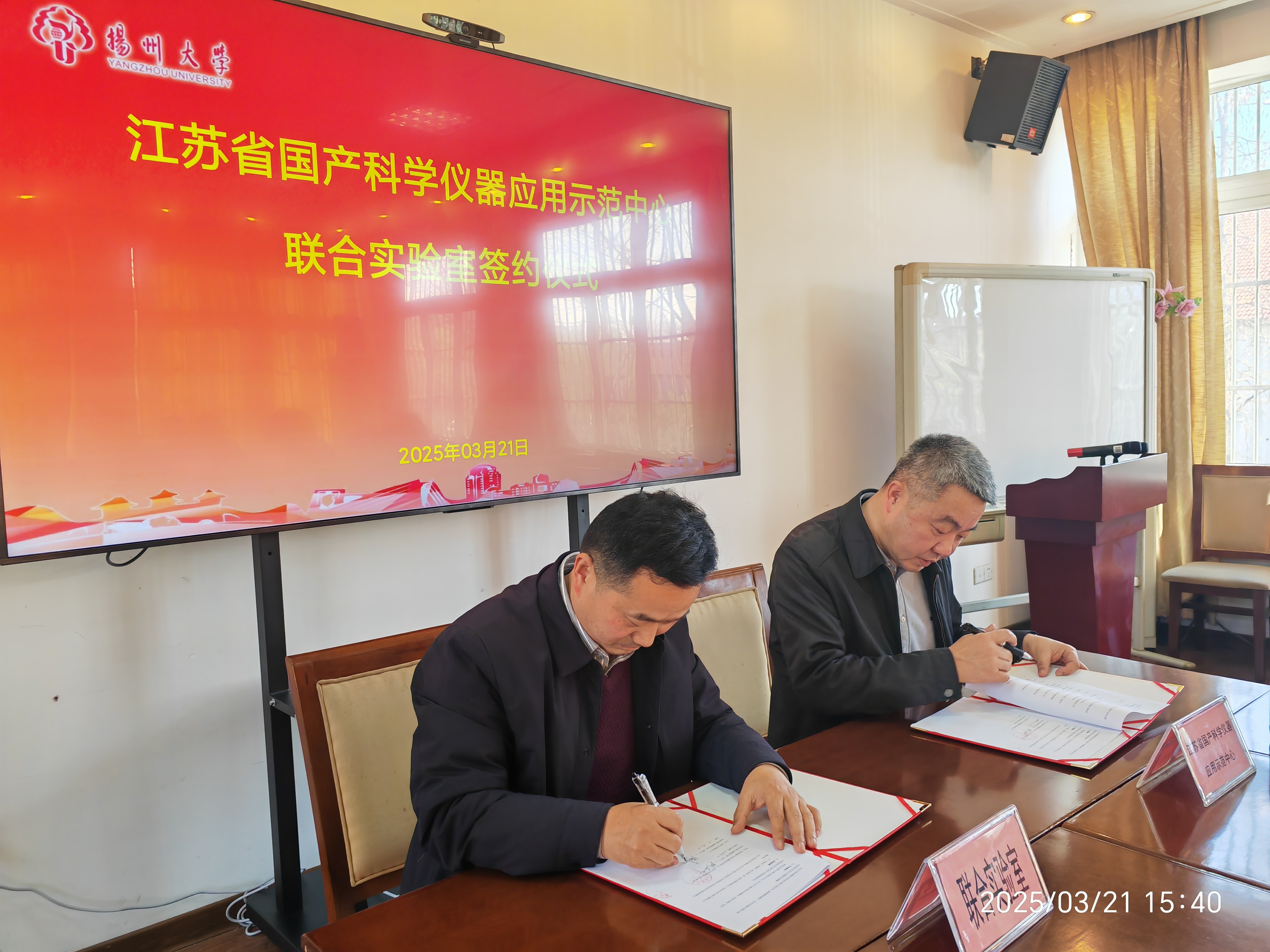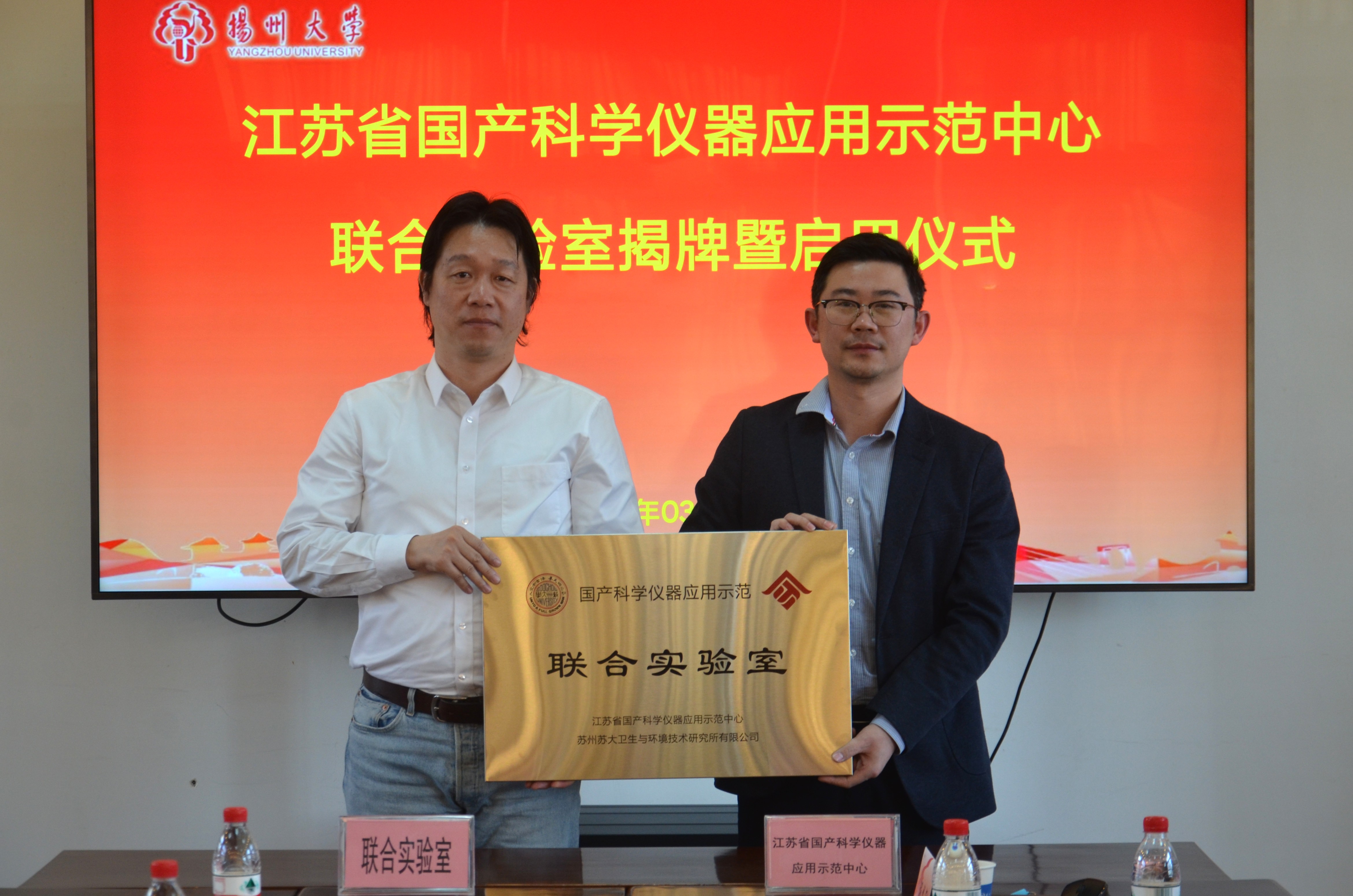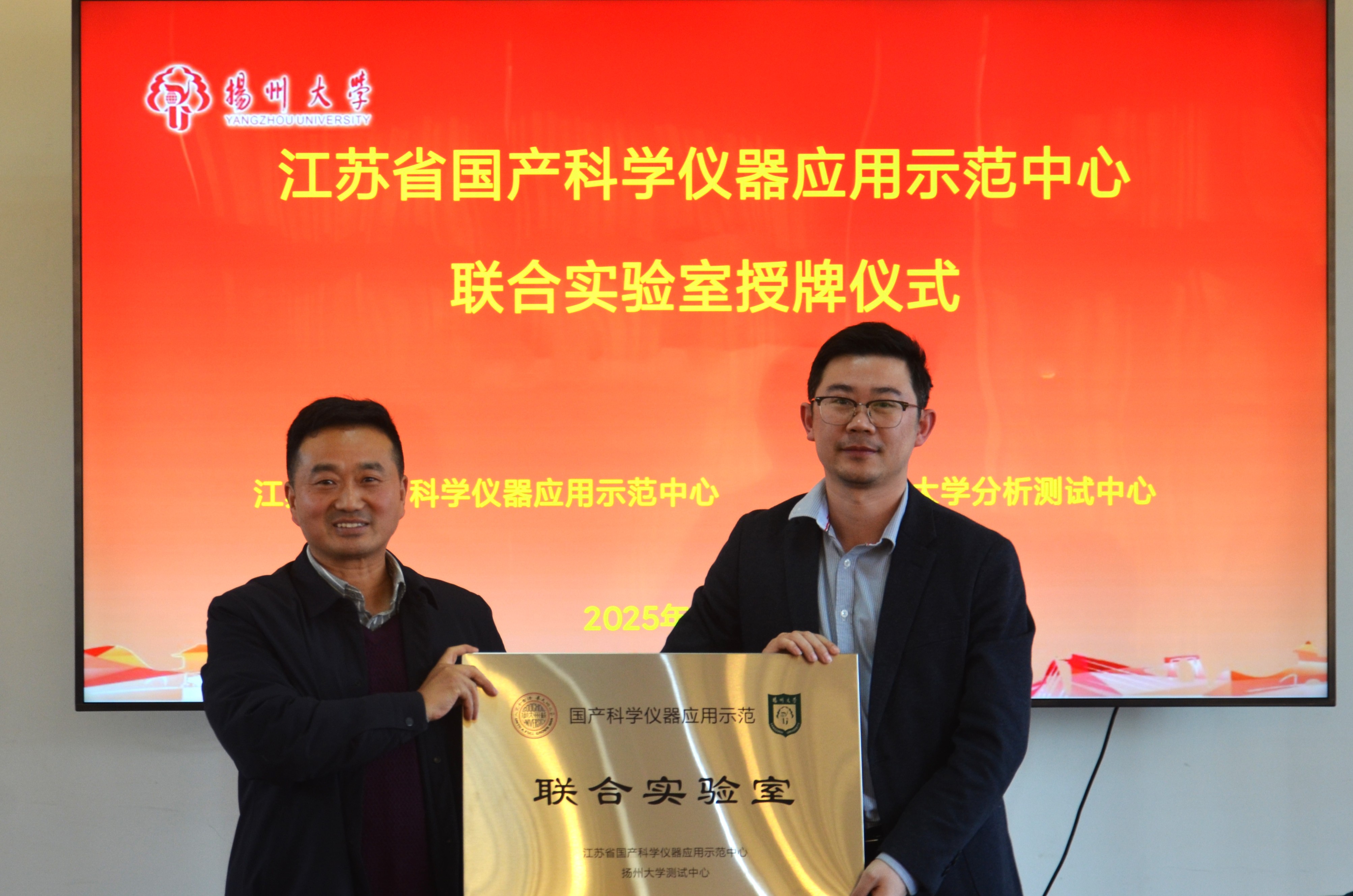 3月21日下午,江苏省国产科学仪器应用示范中心联合实验室合作签约授牌仪式在扬州大学测试中心举行。