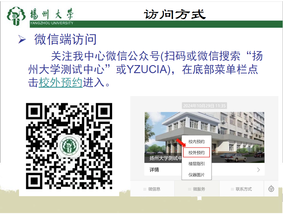 业务联系:0514-87979022 87979383-808 0514-87979244 邮箱地址:cszx@yzu.edu.cn 办公地点:扬州市文汇东路48号扬州大学测试中心